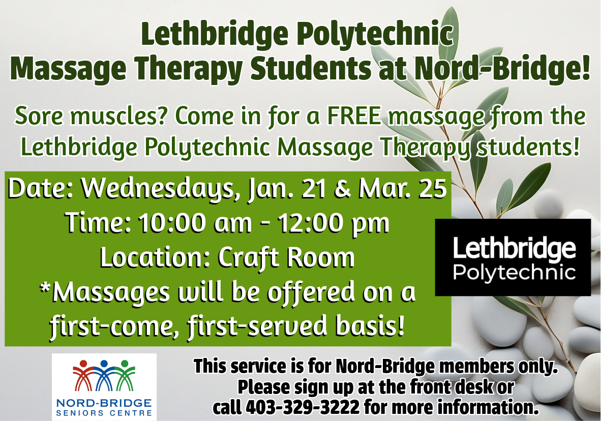 Lethbridge Polytechnic – FREE Massages at Nord-Bridge