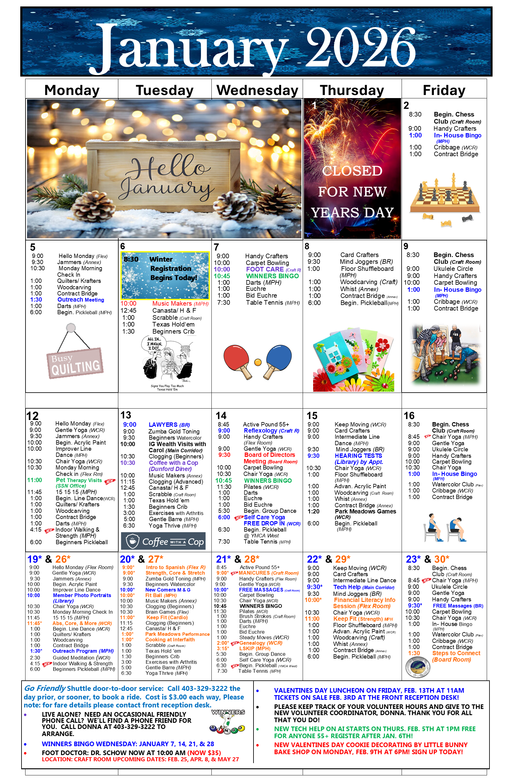 January Recreation Calendar